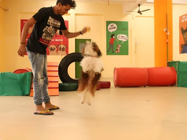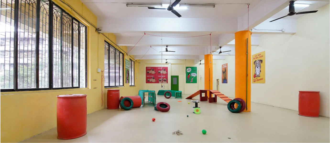 Spread across 6400 sq feet, the infra houses a centralized A.C. set-up, air purification, and odour management system, 24x7 individualized CCTV vigilance, 2000 sq feet dedicated playarea for breed / dog specific games, an inhouse grooming facility, germ resistant vinyl flooring, concealed drainage system to reduce water borne infections.